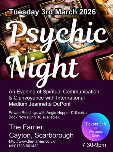 There is a welcome glass of champagne for a;; those attending; and along with a 90 minute public demonstration with Jeannette, guests can also book a 10 min private reading with her colleague Angie Hopper to be held simultaniously.