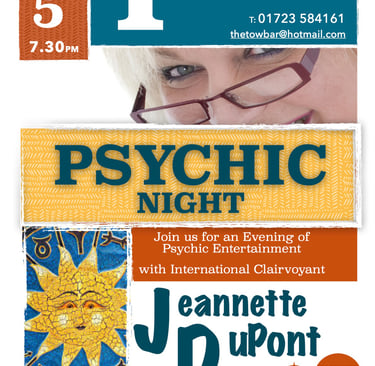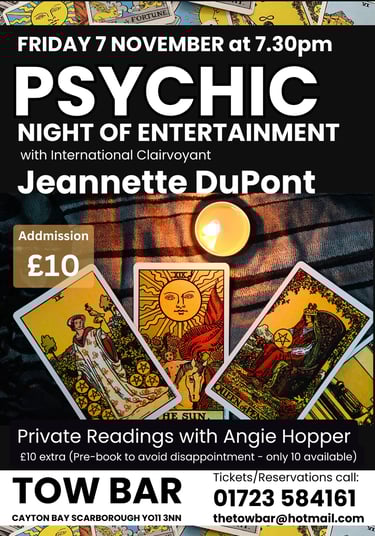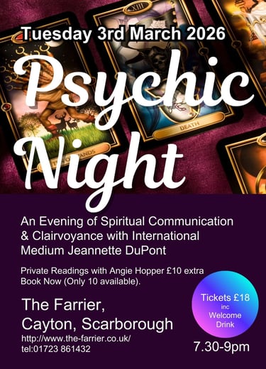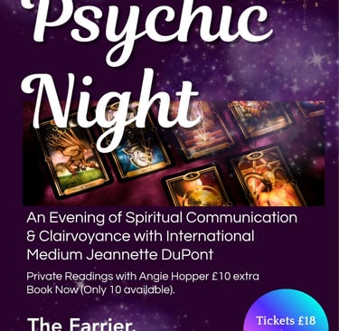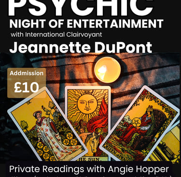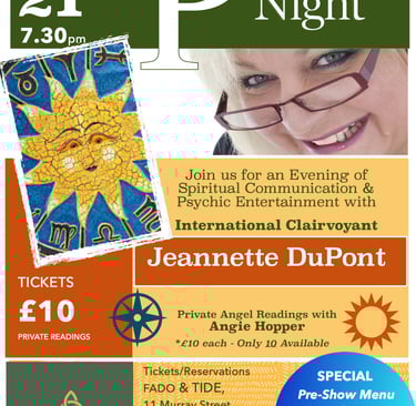There is a welcome glass of champagne for a;; those attending; and along with a 90 minute public demonstration with Jeannette, guests can also book a 10 min private reading with her colleague Angie Hopper to be held simultaniously.